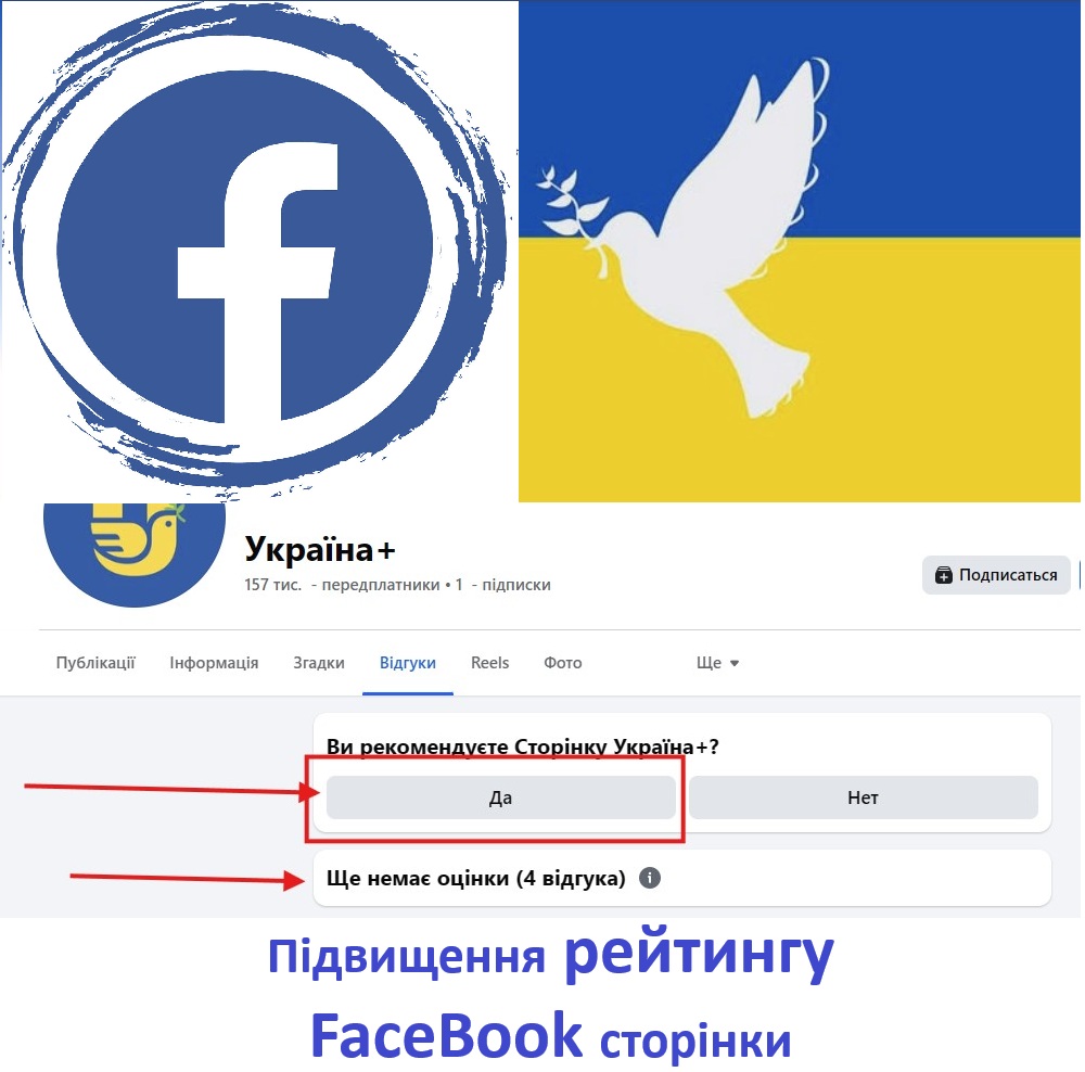Рейтинг сторінки будь-якого ресурсу на Facebook формують відгуки / рекомендації від клієнтів. Раніше можна було залишити тільки зірочку і тим самим підвищити рейтинг сторінки. На даний момент Фейсбук приймає тільки текстові відгуки. На сьогодні рейтинг вашої сторінки прямо впливає на ваш загальний рейтинг в Гугл. Для підвищення рейтингу, ви можете купити відгуки Facebook (купити відгуки фейсбук) у нас.